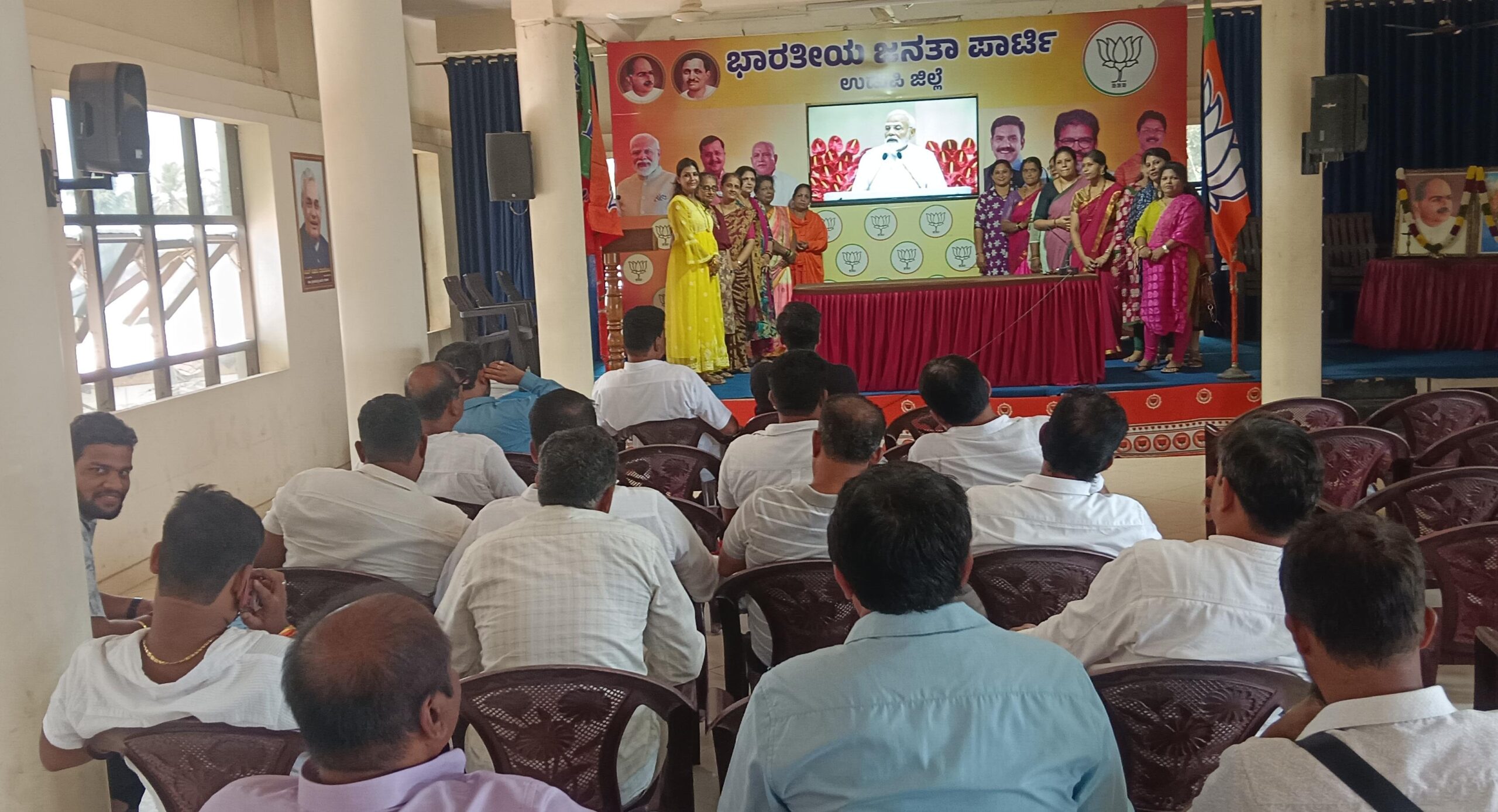 ಉಡುಪಿ : ಏಪ್ರಿಲ್ 13:ಬಿಜೆಪಿ ನೇತೃತ್ವದ ಕೇಂದ್ರ ಸರಕಾರ ಜಾರಿಗೆ ತರಲಿರುವ ಮಹತ್ವಪೂರ್ಣ ‘ನಾರಿ ಶಕ್ತಿ ವಂದನ’ ಅಧಿನಿಯಮದ ಪೂರ್ವಭಾವಿಯಾಗಿ ಏ.13ರಂದು ಪ್ರಧಾನಿ ನರೇಂದ್ರ ಮೋದಿ ಅವರ ಉಪಸ್ಥಿತಿಯಲ್ಲಿ ನವದೆಹಲಿಯ ವಿಜ್ಞಾನ ಭವನದಲ್ಲಿ ನಡೆದ ‘ನಾರಿ ಶಕ್ತಿ ವಂದನ ಸಮ್ಮೇಳನ’ದ ನೇರ ಪ್ರಸಾರವನ್ನು ಬಿಜೆಪಿ ಉಡುಪಿ ಜಿಲ್ಲಾಧ್ಯಕ್ಷ ಕುತ್ಯಾರು ನವೀನ್ ಶೆಟ್ಟಿ ಅವರ ನೇತೃತ್ವದಲ್ಲಿ ಜಿಲ್ಲಾ ಕಛೇರಿಯಲ್ಲಿ ವೀಕ್ಷಿಸಲಾಯಿತು.