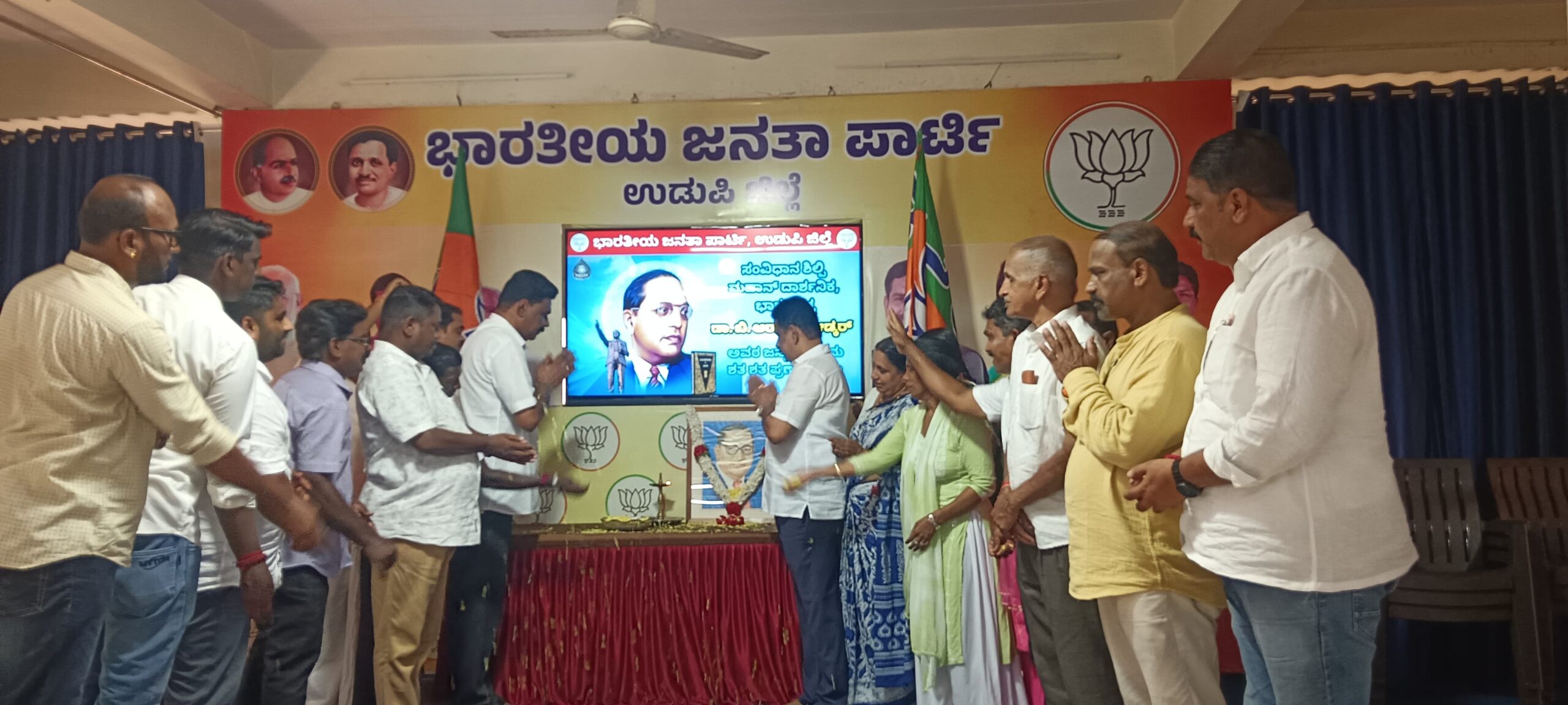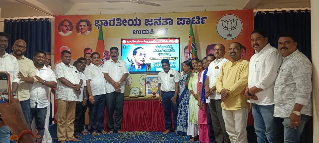 ಉಡುಪಿ :ಏಪ್ರಿಲ್ 14:ಸಂವಿಧಾನ ಶಿಲ್ಪಿ, ಮಹಾ ಮಾನವತಾವಾದಿ, ಭಾರತ ರತ್ನ ಡಾ! ಬಿ.ಆರ್. ಅಂಬೇಡ್ಕರ್ ಅವರ 135ನೇ ಜನ್ಮ ದಿನಾಚರಣೆಯನ್ನು ಜಿಲ್ಲಾ ಬಿಜೆಪಿ ವತಿಯಿಂದ ಜಿಲ್ಲಾ ಎಸ್.ಸಿ. ಮೋರ್ಚಾ ಸಹಯೋಗದೊಂದಿಗೆ ಬಿಜೆಪಿ ಜಿಲ್ಲಾ ಕಛೇರಿಯಲ್ಲಿ ಅಂಬೇಡ್ಕರ್ ಭಾವಚಿತ್ರಕ್ಕೆ ಪುಷ್ಪ ನಮನ ಸಲ್ಲಿಸುವ ಮೂಲಕ ಆಚರಿಸಲಾಯಿತು.