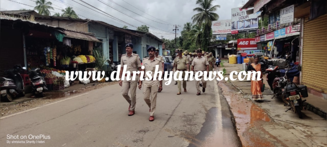 ಹೆಬ್ರಿ ಪೊಲೀಸ್ ಠಾಣೆ ಮತ್ತು ಅಜೆಕಾರು ಪೊಲೀಸ್ ಠಾಣೆಯ ಅಧಿಕಾರಿಗಳು ಹಾಗೂ ಸಿಬ್ಬಂದಿಯವರು ರೂಟ್ ಮಾರ್ಚ್ ನಡೆಸಿದರು.