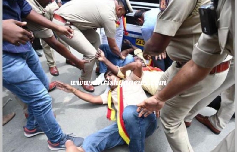 ಗಾಂಧಿನಗರದಲ್ಲಿರುವ ಕರವೇ ಕಚೇರಿಯಿಂದ ವಿಧಾನಸೌಧದತ್ತ ಮೆರವಣಿಗೆಯಲ್ಲಿ ಹೊರಟಿದ್ದ ಕಾರ್ಯಕರ್ತರನ್ನು ಗಾಂಧಿ ಪ್ರತಿಮೆ ವೃತ್ತದಲ್ಲೇ ಪೊಲೀಸರು ತಡೆದು ನಿಲ್ಲಿಸಿದರು. ವಿಧಾನಸೌಧ ಸುತ್ತಮುತ್ತ ನಿಷೇಧಾಜ್ಞೆ ಜಾರಿಯಲ್ಲಿದೆ. ಪ್ರತಿಭಟನೆಗೂ ಅವಕಾಶವಿಲ್ಲ. ಹೀಗಾಗಿ, ಮೆರವಣಿಗೆ ಕೈ ಬಿಟ್ಟು ವಾಪಸು ಹೋಗಿ ಎಂದು ಪೊಲೀಸರು ಎಚ್ಚರಿಸಿದರು.