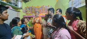ಇಡೀ ಬಡಾವಣೆಯಲ್ಲಿ ಉತ್ಸಾಹ ಸಡಗರಗಳು ಕಂಡುಬಂದವು . ಆರಂಭದಲ್ಲಿ ಐದು ಮನೆಗಳಿಗೆ ತೆರಳಿ ಶ್ರೀ ಮಠದಿಂದಲೇ ಎಲ್ಲ ಮನೆಗಳಿಗೂ ಕೊಡಮಾಡಿದ ಹಿತ್ತಾಳೆಯ ಶ್ರೀ ರಾಮ ದೀಪ ಗಳನ್ನು ಬೆಳಗಿ ಮನೆಯ ದೇವರ ಭಾವಚಿತ್ರಗಳಿಗೆ ಹೂವನ್ನು ಏರಿಸಿ ಮಂಗಳಾರತಿ ಬೆಳಗಿದರು . ಮನೆ ಮಂದಿ ಶ್ರೀಗಳ ಕಾಲಿಗೆ ನೀರೆರೆದು , ಅರಶಿನ ಕುಂಕುಮ , ಓಕುಳಿಯ ಆರತಿಗಳನ್ನು ಬೆಳಗಿ ಭಕ್ತಿಯಿಂದ ಬರಮಾಡಿಕೊಂಡರು . ಮನೆಗೆ ಬಂದ ಗುರುಗಳಿಗೆ ಫಲವಸ್ತುಗಳನ್ಬು ಅರ್ಪಿಸಿದರು. . ಪ್ರತೀ ಮನೆಗಳ ಸದಸ್ಯರನ್ನು ಆತ್ಮೀಯವಾಗಿ ಪರಿಚಯ ಮಾಡಿಕೊಂಡು ಯೋಗಕ್ಷೇಮ ವಿಚಾರಿಸಿದರು .
