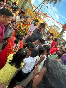 ಬಳಿಕ ಕೇರಿಯ ಪಟ್ಟಾಲದಮ್ಮ ದೇವಿ ಮಂದಿರಕ್ಕೆ ಭೇಟಿ ನೀಡಿ ಆರತಿ ಬೆಳಗಿದರು .ಎಲ್ಲ ಮನೆಗಳಿಗೂ ಶ್ರೀ ಕೃಷ್ಣನ ಸಿಹಿತಿಂಡಿ ಪ್ರಸಾದಗಳನ್ನು ವಿತರಿಸಿದರು . ಸಾಮಾಜಿಕ ನ್ಯಾಯ ವೇದಿಕೆಯ ಡಾ ಆನಂದ್ ಕುಮಾರ್ , ಸ್ಥಳೀಯರಾದ ನಾಗೇಂದ್ರ , ಧರ್ಮ ಜಾಗರಣದ ವಾಮನ್ ರಾವ್ , ನಿತ್ಯಾನಂದ ಗಿರೀಶ , ಮೊದಲಾದವರು ಕಾರ್ಯಕ್ರಮವನ್ನು ಅಚ್ಚುಕಟ್ಟಾಗಿ ಸಂಯೋಜಿಸಿದ್ದರು .