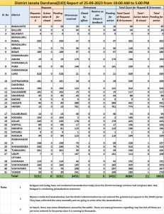 ಬೆಂಗಳೂರು ಸೆ 25: ಮುಖ್ಯಮಂತ್ರಿ ಸಿದ್ದರಾಮಯ್ಯ ಅವರ ಸೂಚನೆಯಂತೆ ಮೊಟ್ಟ ಮೊದಲ ಬಾರಿಗೆ ರಾಜ್ಯಾದ್ಯಂತ ಏಕಕಾಲಕ್ಕೆ ಎಲ್ಲಾ ಜಿಲ್ಲೆಗಳಲ್ಲಿ ನಡೆದ ಜನತಾ ದರ್ಶನಕ್ಕೆ ಸಾರ್ವಜನಿಕರು ಮತ್ತು ಅಧಿಕಾರಿಗಳಿಂದ ಉತ್ತಮ ಸ್ಪಂದನೆ ವ್ಯಕ್ತವಾಗಿದೆ.