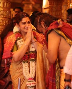 ಕೇರಳದ ತ್ರಿಶೂರ್ನ ವಿಷ್ಣುಮಾಯಾ ದೇವಸ್ಥಾನದಲ್ಲಿ ಖುಷ್ಬೂ ಅವರಿಗೆ ಸುಹಾಸಿನಿ ಪೂಜಾ ಎಂದು ಕರೆಯಲಾಗುವ ನಾರಿ ಪೂಜೆಯನ್ನು ಇತ್ತೀಚೆಗೆ ನೆರವೇರಿಸಿರುವುದು ಗಮನ ಸೆಳೆದಿದೆ.