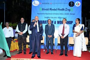 To commemorate World Mental Health Day on the 10th of October 2023, the Department of Student Affairs at MAHE, in collaboration with FITBIV, KMC Manipal, and the Sports Committee of KMC Manipal, organised a Mental Health Awareness Marathon. This extraordinary event also served as a tribute to the 125th anniversary of Dr TMA Pai, the esteemed founder of our university.