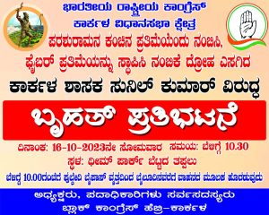 ಪರಶುರಾಮ ಥೀಂ ಪಾರ್ಕ್ ಗೇ ಭೇಟಿ ನೀಡಿದ ಕಾರ್ಕಳ ಕಾಂಗ್ರೆಸ್ ಮುಖಂಡ ಮುನಿಯಾಲು ಉದಯ್ ಕುಮಾರ್ ಶೆಟ್ಟಿ ಮಾತನಾಡುತ್ತಾ, ಬೈಲೂರು ಪರಶುರಾಮ ಥೀಮ್ ಪಾರ್ಕಿನಲ್ಲಿ ಕಂಚಿನ ಪ್ರತಿಮೆ ನಿರ್ಮಾಣ ಮಾಡಿದ್ದೇವೆ ಎಂದು ಹೇಳಿ ಪೈಭರ್ ಪ್ರತಿಮೆ ನಿರ್ಮಿಸಿ ಶಾಸಕ ಸುನೀಲ್ ಕುಮಾರ್ ಜನತೆಗೆ ನಂಬಿಕೆ ದ್ರೋಹವೆಸಗಿದ್ದಾರೆ. ಹೀಗಾಗಿ ಬೃಹತ್ ಪ್ರತಿಭಟನೆಯನ್ನು ಕಾಂಗ್ರೆಸ್ ಪಕ್ಷದ ವತಿಯಿಂದ ಸೋಮವಾರ ಬೆಳಿಗ್ಗೆ 10:30 ಥೀಮ್ ಪಾರ್ಕಿನ ತಪ್ಪಲಿನಲ್ಲಿ ಪ್ರತಿಭಟನೆ ಹಮ್ಮಿಕೊಂಡಿದೆ ಎಂದರು.