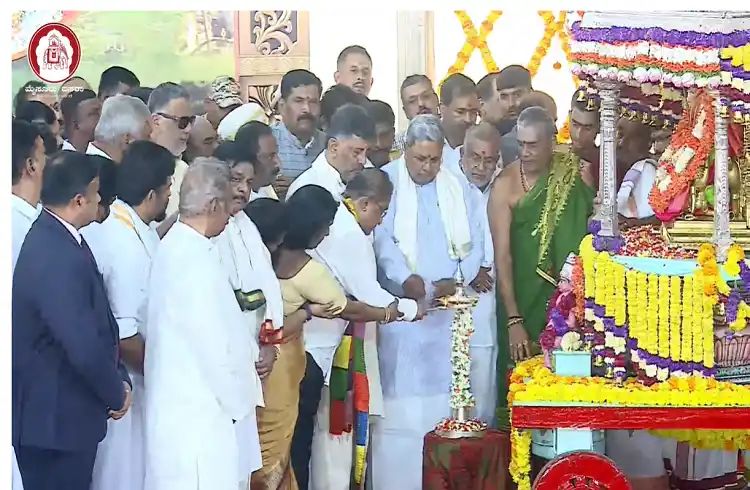 ಮುಖ್ಯಮಂತ್ರಿ ಸಿದ್ದರಾಮಯ್ಯ ಅವರು ವಿಶ್ವವಿಖ್ಯಾತ ಮೈಸೂರು ದಸರಾ ಮಹೋತ್ಸವಕ್ಕೆ ಚಾಮುಂಡಿ ಬೆಟ್ಟದಲ್ಲಿ ಚಾಮುಂಡೇಶ್ವರಿ ದೇವಿಗೆ ಅಗ್ರ ಪೂಜೆ ಸಲ್ಲಿಸುವ ಮೂಲಕ ಸಾಂಪ್ರದಾಯಿಕವಾಗಿ ಚಾಲನೆ ನೀಡಿದರು. ಉಪ ಮುಖ್ಯಮಂತ್ರಿ ಡಿ.ಕೆ.ಶಿವಕುಮಾರ್ ಅವರು ಮುಖ್ಯಮಂತ್ರಿಗಳ ಜತೆಗಿದ್ದರು